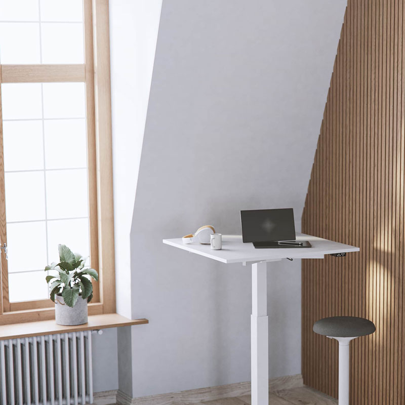 Elevate 1 är ett av våra skrivbord som drivs med 1 motor. Bordet ingår i serien Elevate som består av olika höjdjusterbara skrivbord som drivs med 1 motor eller 2 motorer. Elevate 1 är ett prisvärt höj- och sänkbart bordsstativ utrustat med enkel motor. Det är enkelt att justera höjden för att växla mellan sittande och stående arbetsställning, vilket främjar en ergonomisk arbetsmiljö. Stativet lagerhålls i vit, svart eller silvergrå färg.
